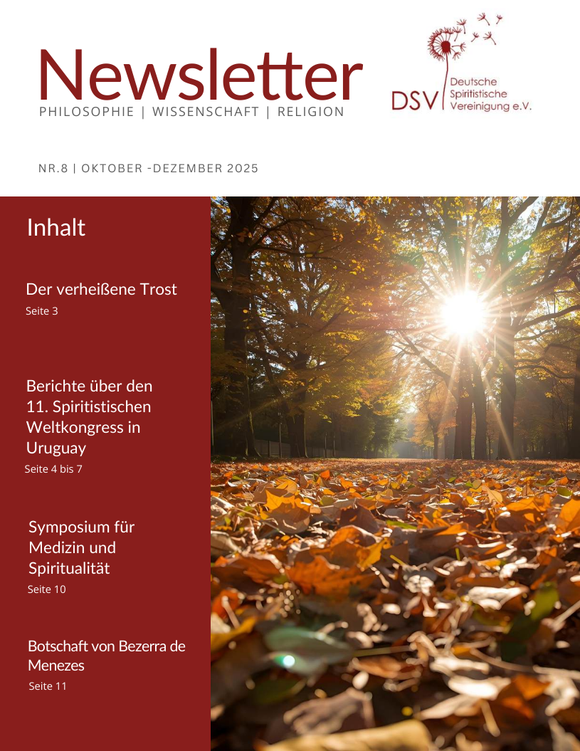Wir freuen uns, Ihnen unseren Newsletter vorstellen zu dürfen, der jeweils quartalsweise online erscheint. Dieser Newsletter ist an die Stelle des Spiritistischen Magazins getreten.