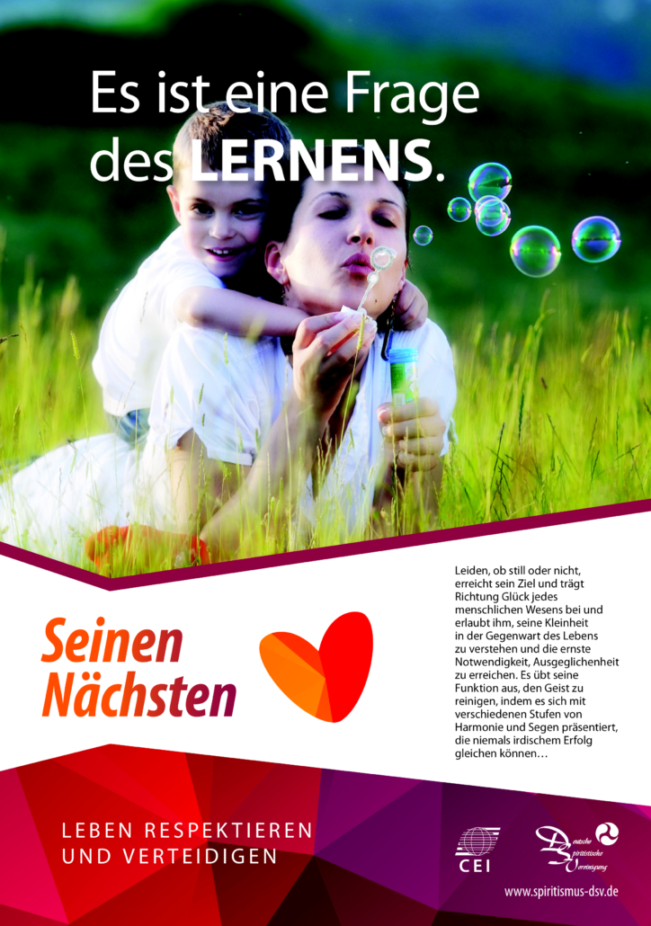 Die spiritistische Lehre lehrt, dass es mehrere Leben gibt und dass jede Existenz eine Gelegenheit ist, die Gott dem unsterblichen Geist gewährt, um neue Erfahrungen zu sammeln, damit er allmählich seinen Evolutionsprozess in Richtung Vollkommenheit und Glück vollenden kann. In diesem Sinne sind alle Schwierigkeiten und Schmerzen vorübergehend und werden enden. Über den Tod des physischen Körpers hinaus lebt der Geist weiter und bewohnt eine andere Ebene, wo er die Belohnung für die Reife findet, die ihm das neue Lernen gebracht hat, oder wo er die Last des Gewissens für verpasste Gelegenheiten erleiden wird.
